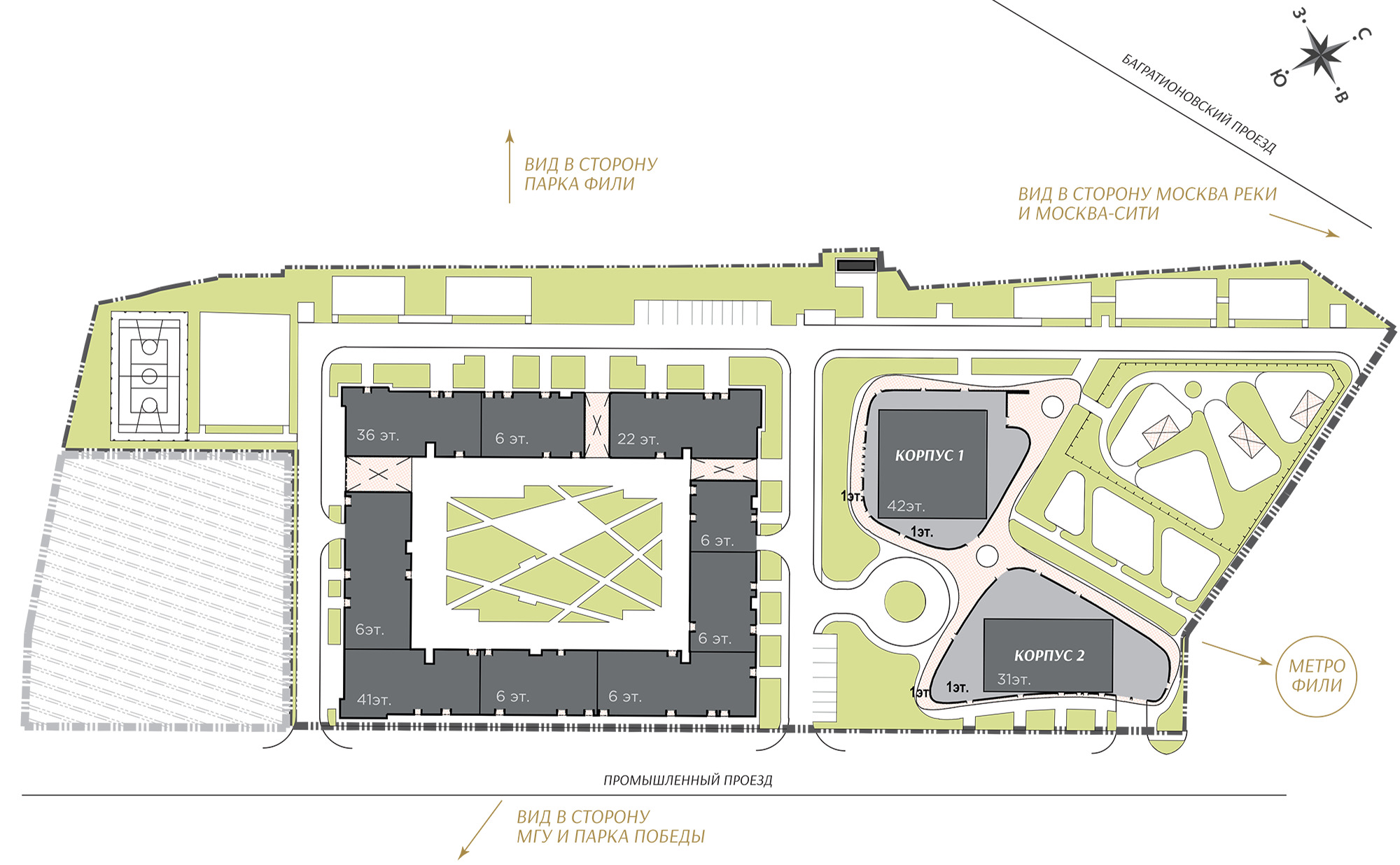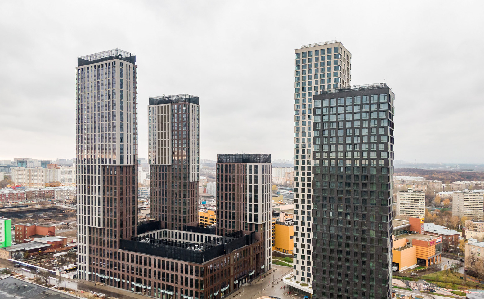 На первых этажах корпусов разместятся супермаркеты, отделения банков, школа и центр раннего развития, уютные кафе и пекарни, и бытовые службы. На территории комплекса будут открыты детский сад и школа.