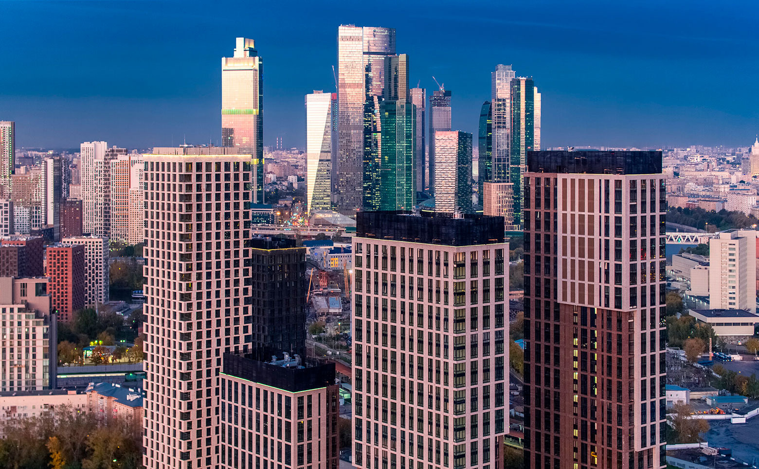 В корпусах представлена возможность выбрать квартиры с подчистовой отделкой или без отделки. Квартиры выполнены с панорамным остеклением, из окон открываются виды на центр столицы, высотки «Москва-Сити» и Парк Победы. В них так же спроектированы потолки высотой 3.1 метра.