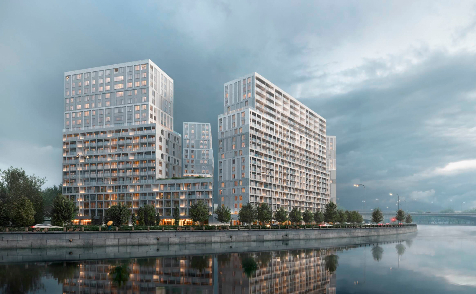 Остекление в проекте «FØRST» определяет ключевую типологию квартир. Те, что выходят на реку — с панорамными окнами высотой до 2,5 метра и шириной от стены до стены. Квартиры, которые смотрят во двор, отличаются окнами шириной до 1,8 метра и подоконниками на высоте 45 см от пола. В проекте предусмотрено множество планировочных решений — квартиры с окнами в ванной, пентхаусы с камином, есть квартиры с террасами, патио и сауной.