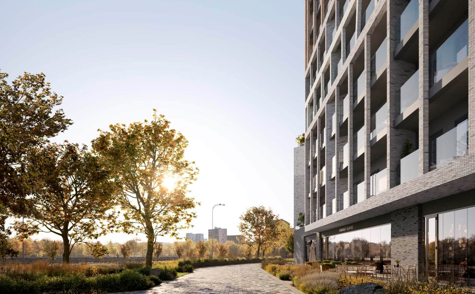 В проекте «FØRST» всего 8 секций до 20 этажей. Клинкерные фасады воспроизводят расцветку прибрежных гор: чередующиеся темно- и светло-серые этажи создают эффект слоистой скальной породы. Скульптурная нерегулярность приватных лоджий придает фасадам тектоническую структуру.  В главном лобби проекта предусмотрена библиотека и камин.