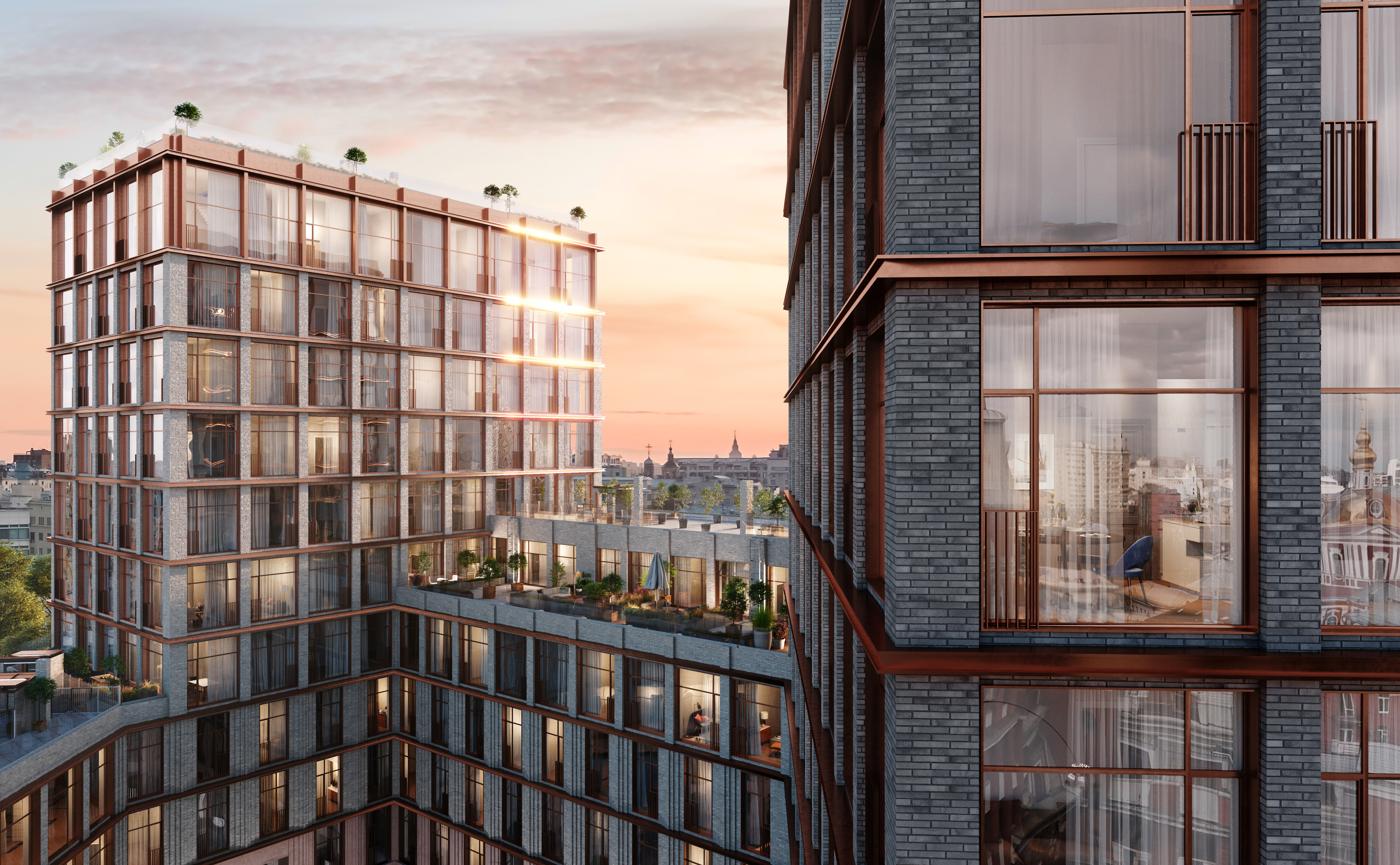 Проект «Kazakov Grand Loft» представляет собой жилой дом высотой 11 этажей. Фасады комплекса облицованы клинкерным кирпичом ручной формовки терракотового, кофейного и серого оттенков.